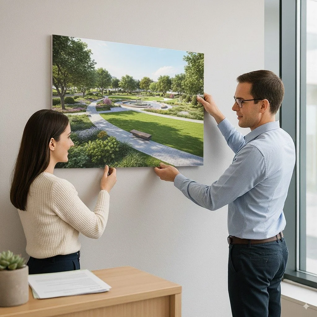 Foamcore boards are perfect when you want a clean, mounted appearance that's still easy to handle and position. The smooth white surface takes print beautifully, and the lightweight foam core makes them ideal for temporary installations, presentations, or anywhere you need a polished look without permanent mounting.